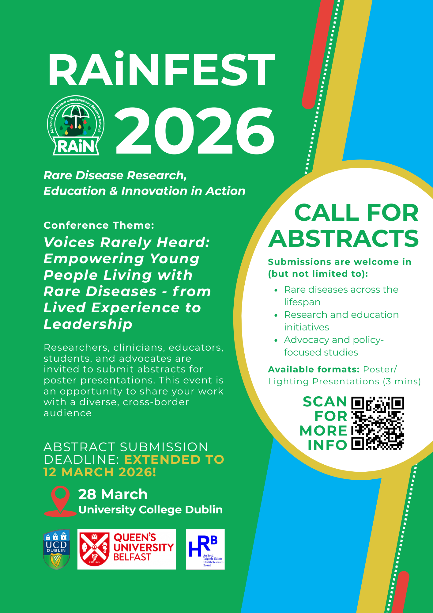 Delivered in collaboration with key partners including Children’s Health Ireland and the Health Research Board, RAiNFEST 2026 aims to strengthen inclusive, patient-centred approaches across research, care, and policy.